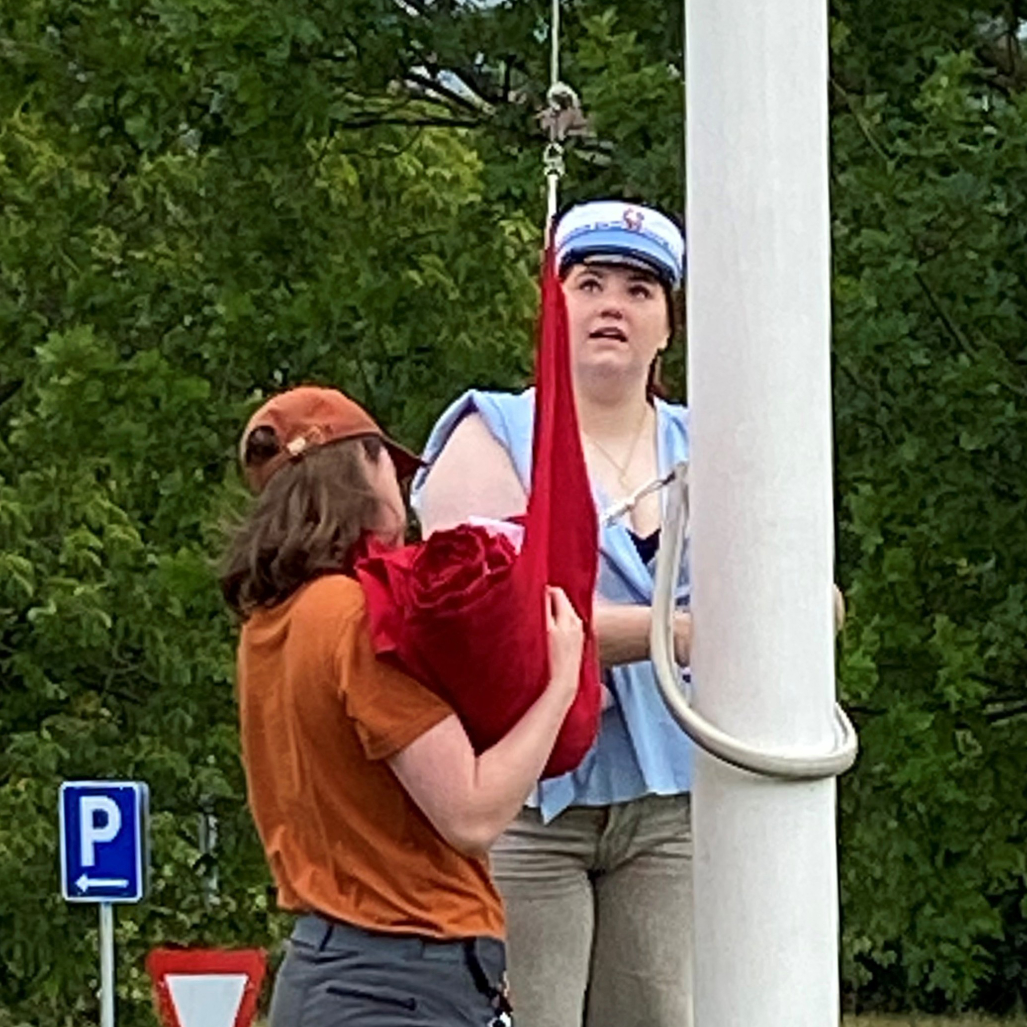 Traditionen tro skulle flaget hejset, da årets første Hf-søfartsstudent fik huen på. I år var det 20-årige Freja, der som den første fik den flotte hue med signalflag på hovedet og på den måde kunne markere, at hun nu er færdig med sin hf-søfartsuddannelse. Agnes, som både er hendes medstuderende og roommate hjalp med at hejse flaget og fejre den store dag.